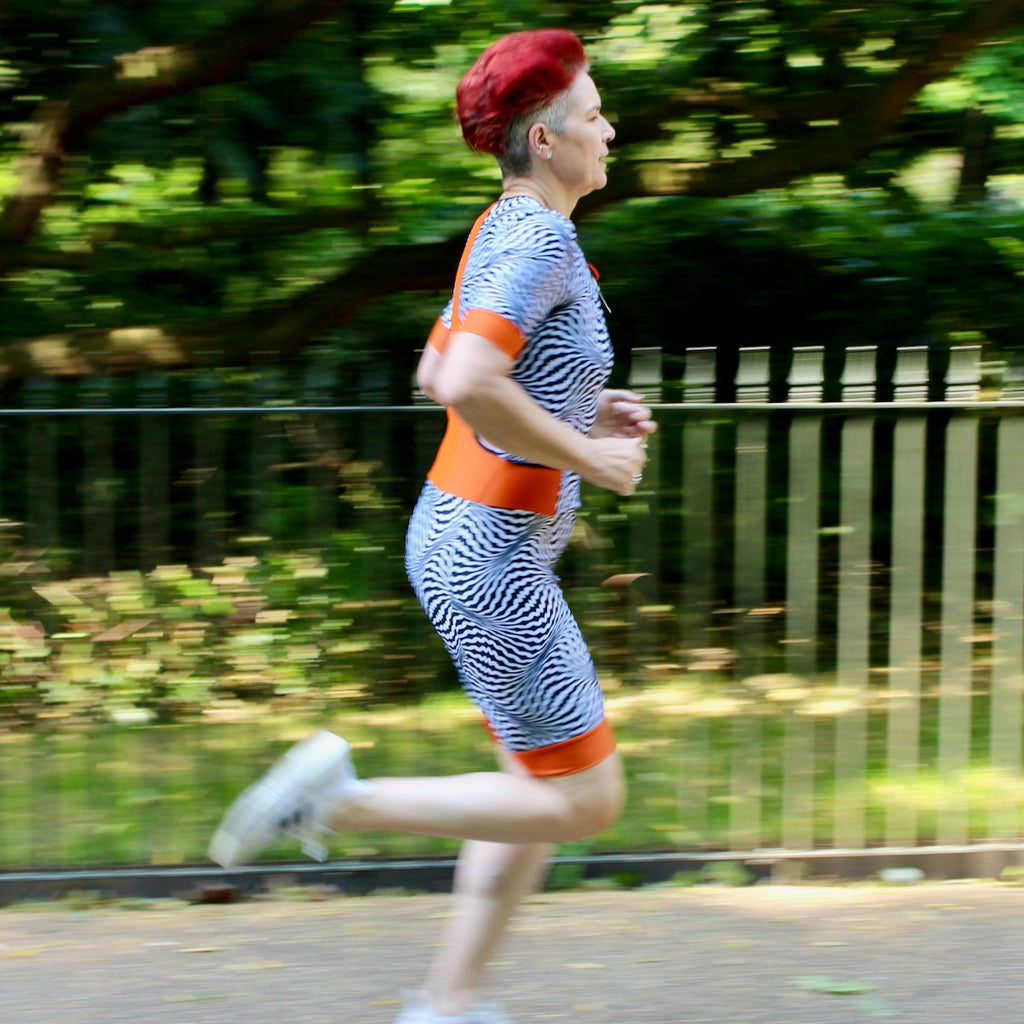 I am a long-distance runner and also a sewist - I've long been disappointed by the quality and fit of exercise clothing available on the market, so I've been sewing my own for the past few years - even running seven full marathons in my own-sewn gear! All my digital sewing patterns have been road-tested by myself and a team of fellow fit sewists. During development of this pattern I completed the Full distance London Duathlon (10km run / 44km cycle / 5km run)!