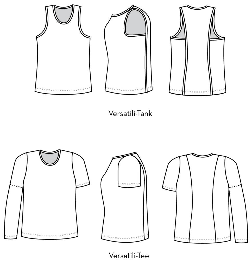 - "Trimless" Print at Home pdf (compatible with A4 and US Letter), using 17 pages for the Versatili-Tank, 19 pages for the short sleeved Versatili-Tee, and 23 pages for the long sleeved Versatili-Tee