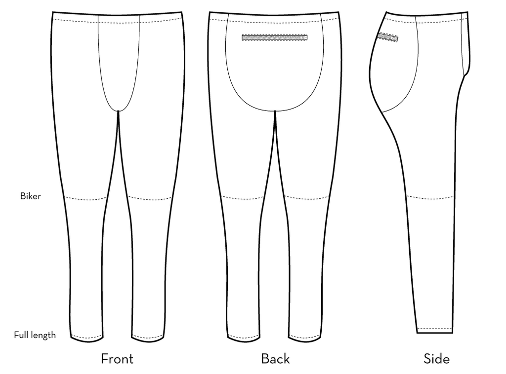 Beginner sewing skills are required for the basic shorts or leggings - some experience with sewing knits is expected. Intermediate sewing skills are required for the zipper pocket.
