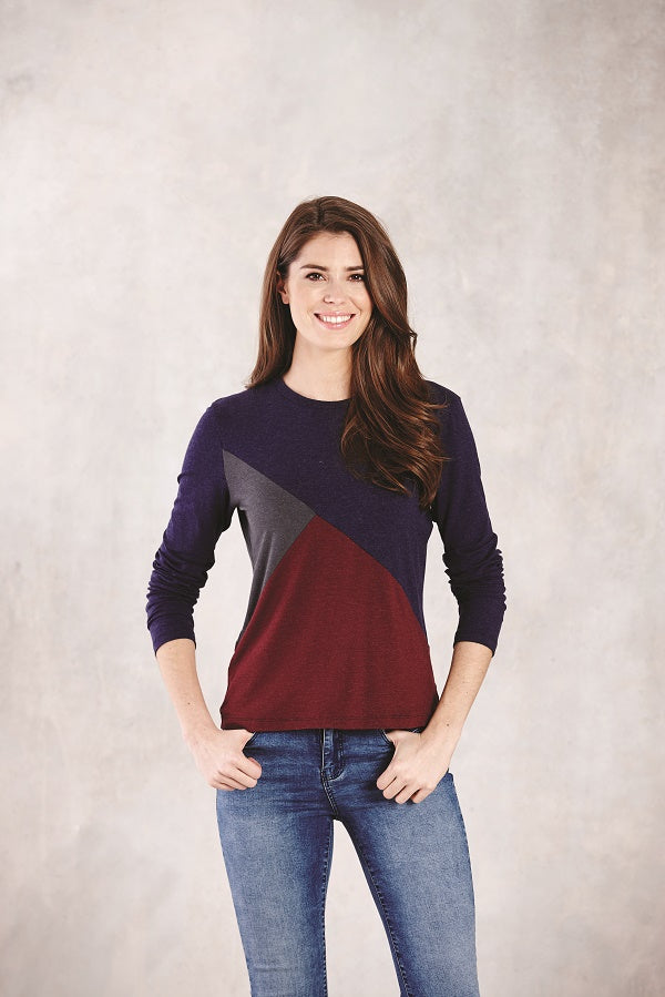 Sew a basic long- or short-sleeved teeshirt with banded neck and asymmetric seaming, or choose to add on thumb cuffs to the sleeves (without any hand sewing!), a hood with a special opening for your ponytail, or a zippered back pocket - perfect for cycling and hiking. Choose to add just one, or even all three features onto your teeshirt! Geometric seaming on the front and back makes this top perfect for colourblocking.